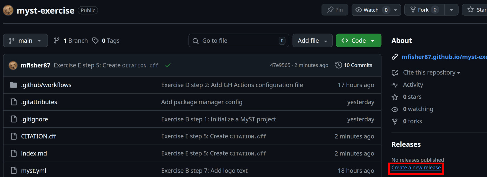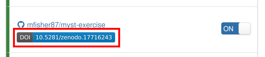 💪 Exercise E: Get a DOI for your published content on GitHub¶
